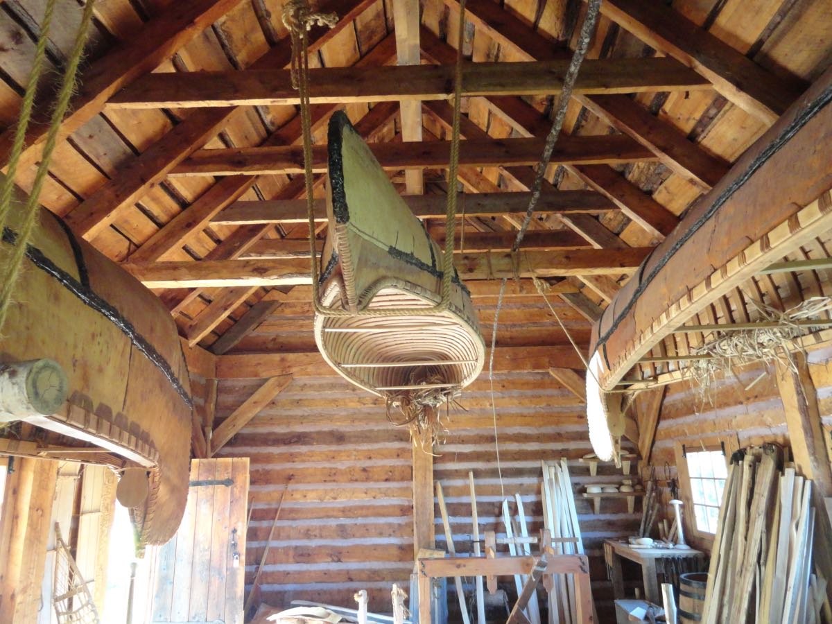 On the ground of the monument are reconstructed buildings like this canoe workshop. Costumed interpreters help bring the story to life. (but they’re good ones, so they’re not creepy)