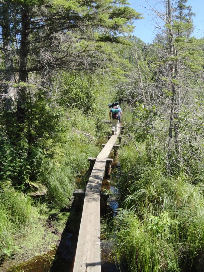 We began our hiking from McCargoe Cove and headed to West Chickenbone Lake. Lots of trail is on these elevated planks over wetlands.