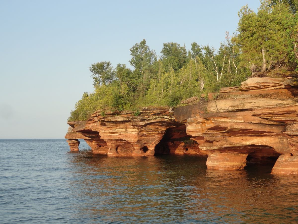 The first stop on our trip was Apostle Islands National Lakeshore in Wisconsin. This is the northern shore of Devil’s Island, where Lake Superior’s intense waves have eroded these sea caves.