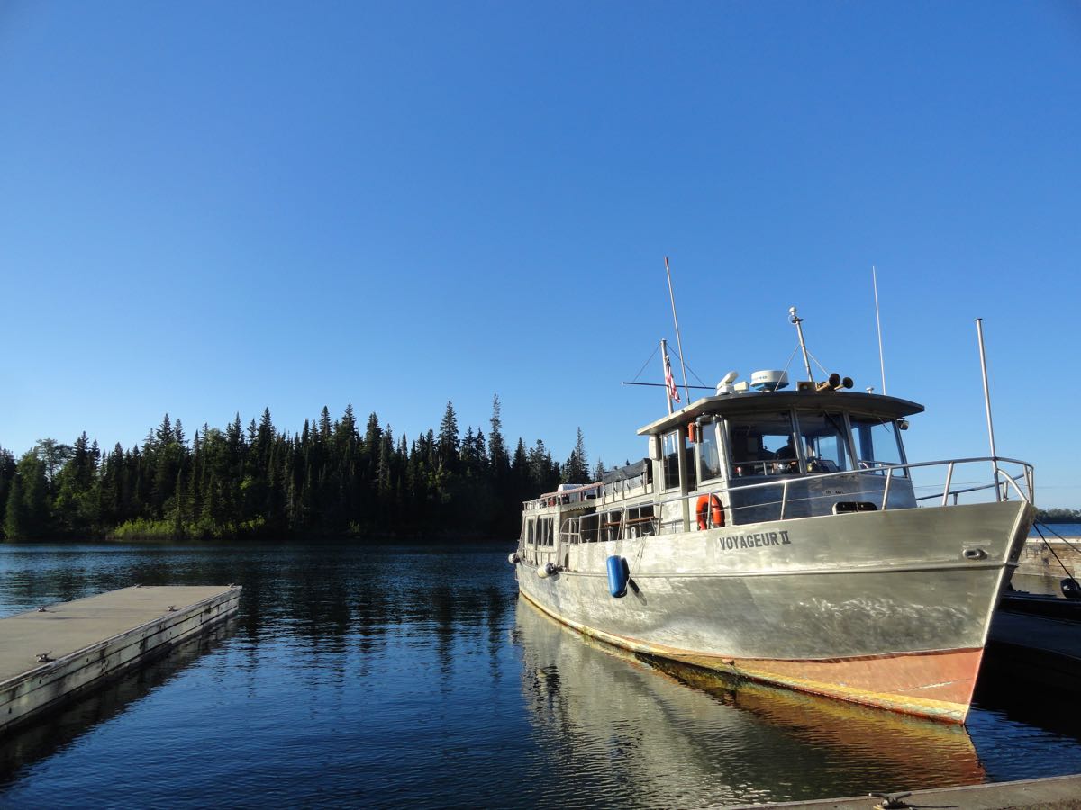 The Voyageur II docked at Rock Harbor waiting to take us back to Minnesota. At this point it had been three days since we’d had contact with the outside world.