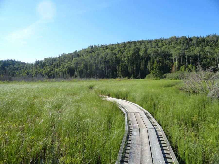 Our first Canadian National Park, Pukaskwa (PUCK-uh-saw). This long boardwalk crossed a big wetland along the Coastal Trail.