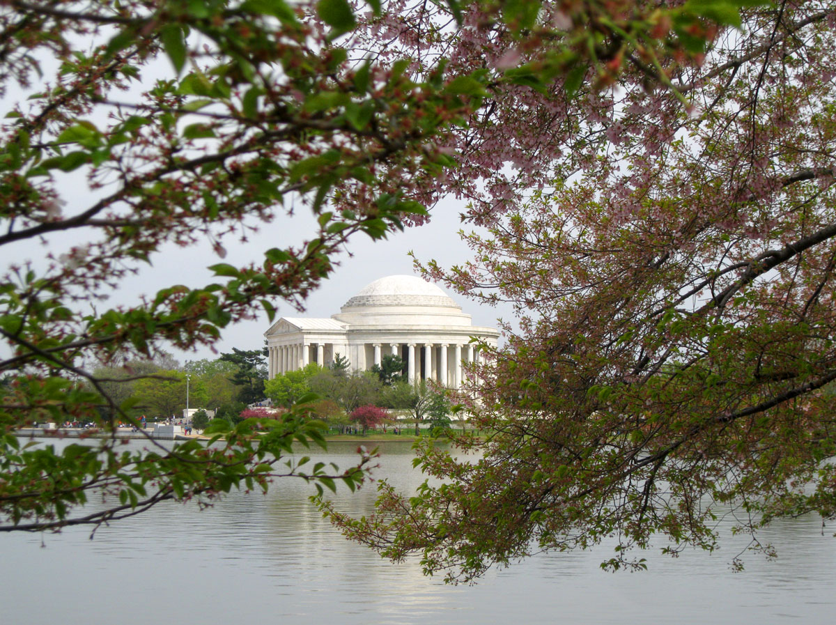 View of the Jefferson Memorial from across the tidal basin. The famous cherry blossoms had just passed their prime.